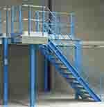 Treppenaufgänge mit Gitterroststufen und Knie und Handlauf, mit oder ohne Zwischenpodest, Stufenabstand max. 190 mm, Stufentiefe 250 mm
