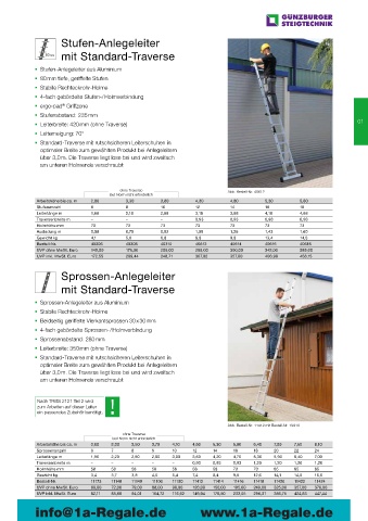Zubehör Details und Komplettübersicht ab Seite 56 Sprossenanzahl 6 1,90 7 2,20 8 2,50 9 2,80 10 12 14 16 18 20 22 24